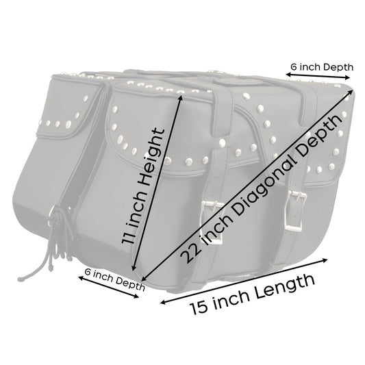 Milwaukee Leather SH66601ZB Black Zip-Off Double Pocket Studded PVC Throw Over Saddlebags