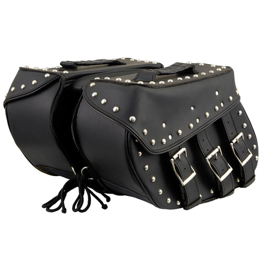 Milwaukee Leather SH658ZB Medium Zip-Off Studded PVC Slanted Throw Over Motorcycle Saddlebag