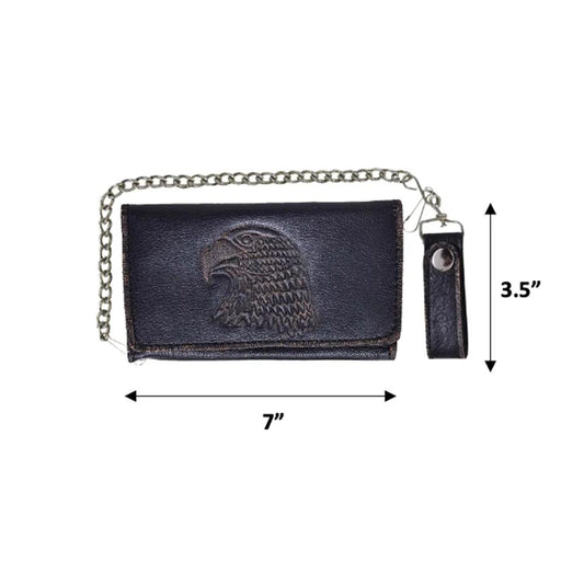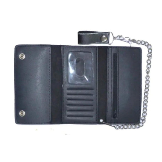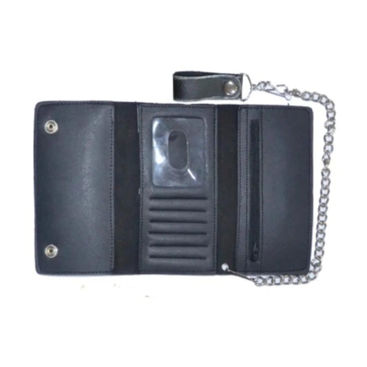 Brown Trifold Snap Closure Biker Long Chain Wallet