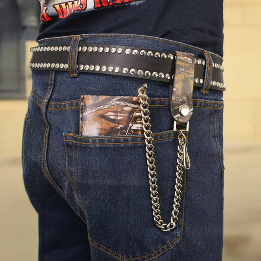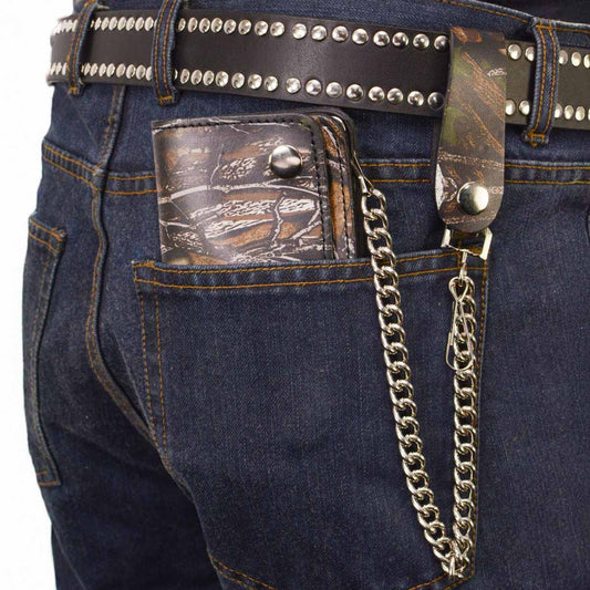 Milwaukee Leather MLW7804 Men's 4” Camouflage Tri-Fold Leather Biker Wallet w/ Anti-Theft Stainless Steel Chain