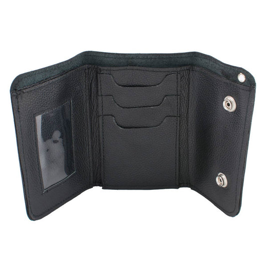 Milwaukee Leather MLW7820 Men's Black Leather Tri Fold Wallet with Steel Chain