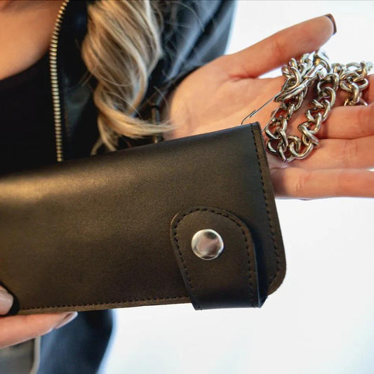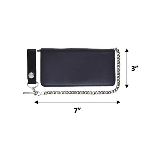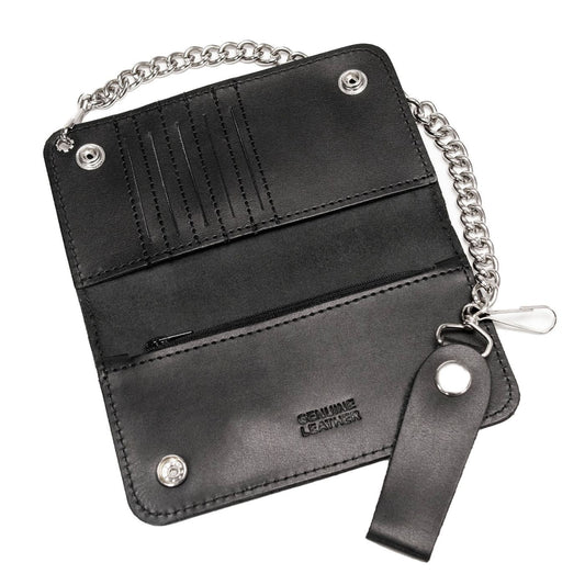 Milwaukee Leather MLW7890 Men's 6" Leather Bi-Fold Biker Wallet w/ Anti-Theft Stainless Steel Chain and Zipper Pocket