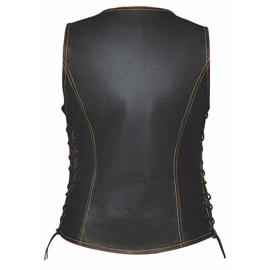 Hot Leathers VSL1009 Ladies Black Lambskin Motorcycle Biker Vest with Grommet Accents
