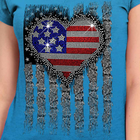 Hot Leathers Ladies Heartbeat Flag Fitted Short Sleeve 3D All Over Printed T-Shirt GLS1005