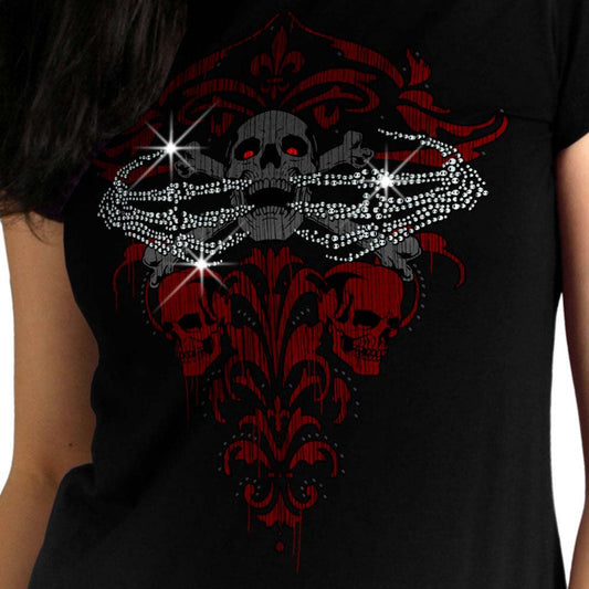 Hot Leathers GLC1561 Ladies Black Skeleton Bling Hands T-Shirt