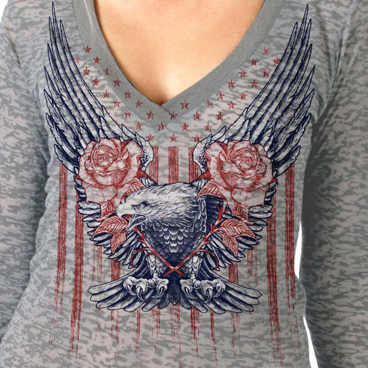 Hot Leathers Ladies Long Sleeve Burnout Up-Wing Eagle Shirt GLC3539