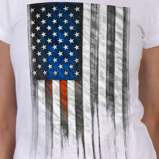 Hot Leathers GLR1569 Ladies White Short Sleeve Heartbeat Flag T-Shirt