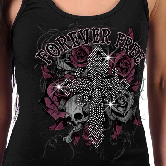 Hot Leathers GLR2556 Ladies Black Cross Bling Tank Top Shirt