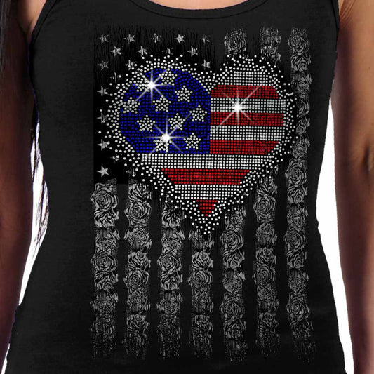 Hot Leathers GLR2559 Ladies Black Heart Bling Flag Tank Top Shirt