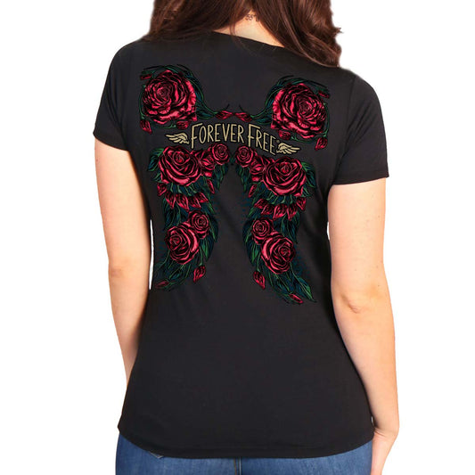Hot Leathers GLD1550 Ladies Black Rose Wings V-Neck T-Shirt