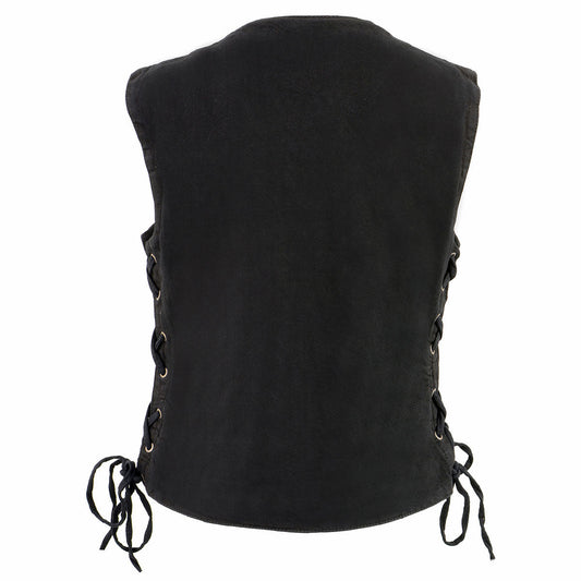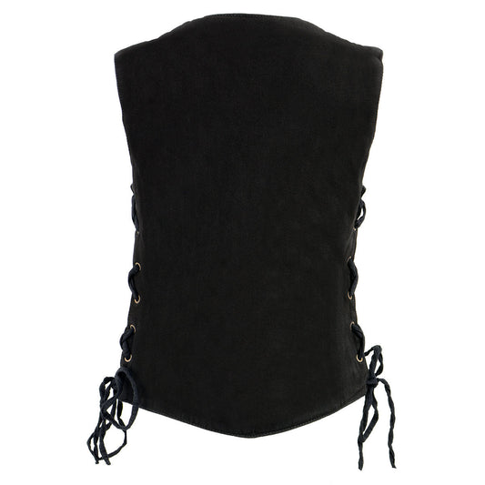 Milwaukee Leather MDL4020 Women's Classic Black ‘6 Pocket’ Side Lace Denim Vest