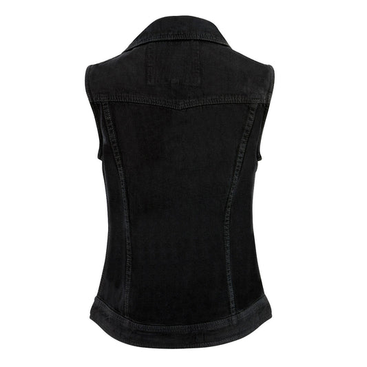 Milwaukee Leather MDL4030 Women's Black Denim Zipper Front Motorcycle Vest with Studded Spikes