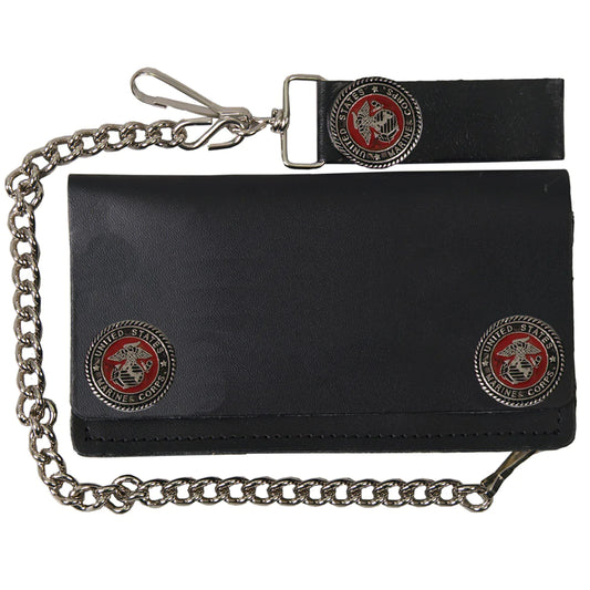 6" US Marines Bi-Fold WLA2012 Leather Snap Bi-Fold Wallet with Chain | Hot Leathers