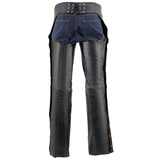 Milwaukee Leather Men's Black Premium Leather Motorcycle Rider Chaps w/ Thigh Pocket and Mesh Liner-ML1190