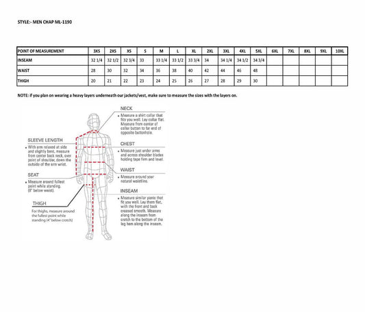 Milwaukee Leather Men's Black Premium Leather Snap Out Thermal Lined Motorcycle Rider Chaps- ML1191