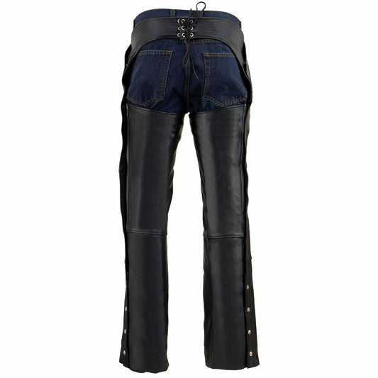 Milwaukee Leather MDL6905 Women's Two Tone Black and Beige Denim and Leather Chaps with Two Front Pockets