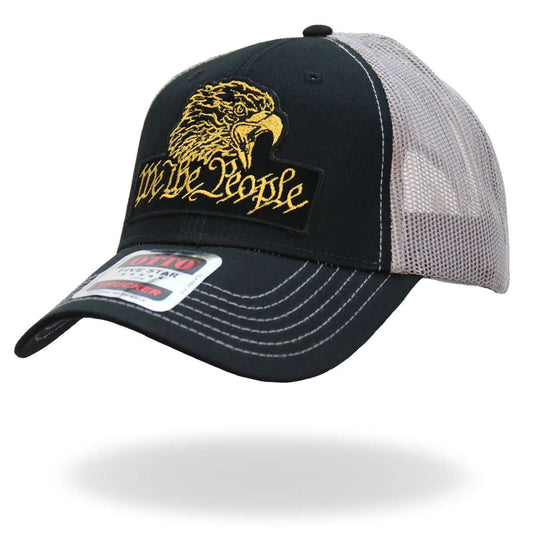 Hot Leathers Black Gray and Yellow Trucker Hat We The People Eagle GSH1049