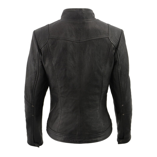 Milwaukee Leather SFL2801 Women's Racer Black Stand Up Collar Motorcycle Fashion Leather Jacket