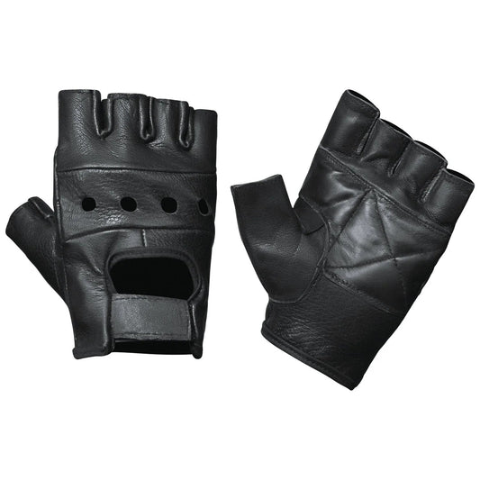 Milwaukee Leather SH851 Men's Black Deerskin Leather Fingerless Gloves with Gel Palm