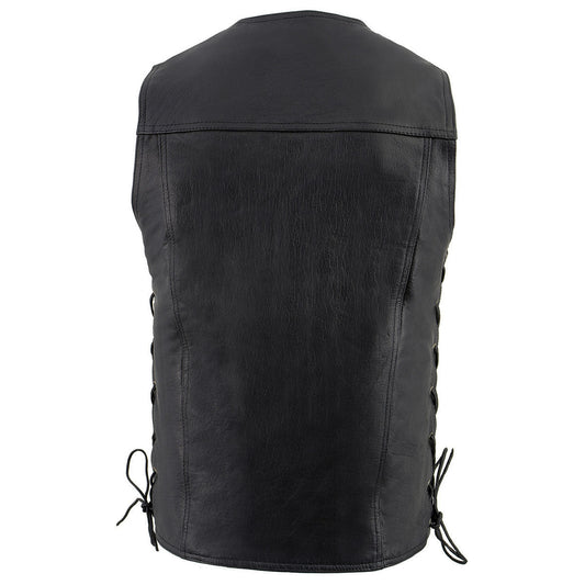 Milwaukee Leather LKM1360 Men's Classic Black Leather V-Neck Motorcycle Rider Vest w/ Adjustable Side Laces