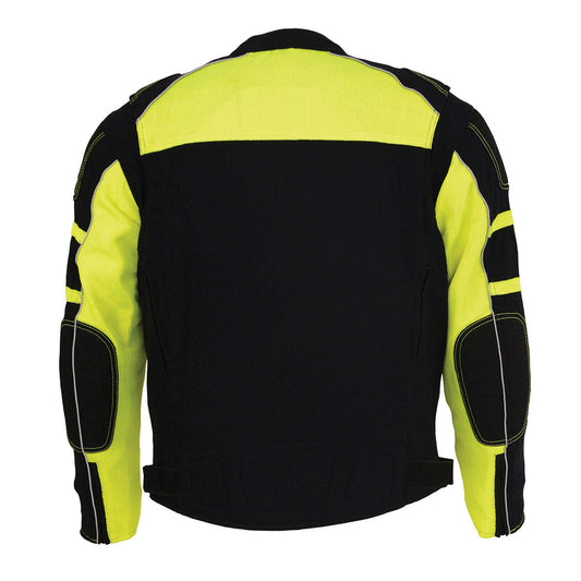Milwaukee Leather MPM1791 Men's Black and Neon Green Armored Textile Motorcycle Riding Jacket