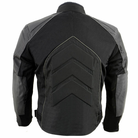 NexGen SH2153 Men's Black and Grey Armored Moto Textile and Leather Combo Jacket