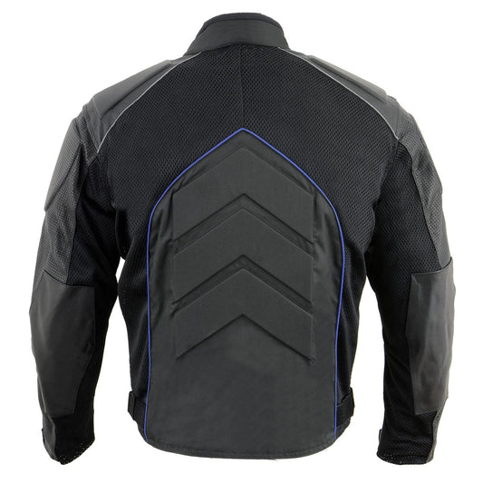 NexGen SH2153 Men's Black and Blue CE Armored Motorcycle Textile and Leather Combo Jacket