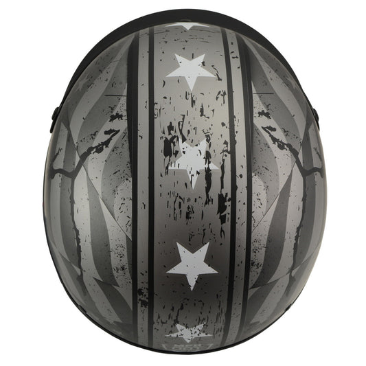 Milwaukee Helmets MPH9871N Novelty Vintage Grey Stars and Stripes Silver Grey Half Helmet