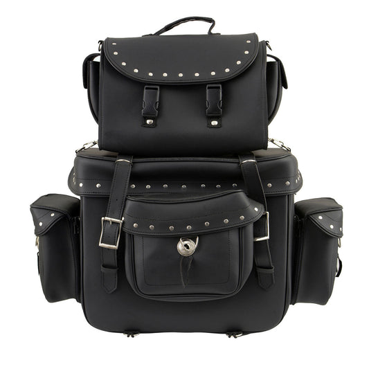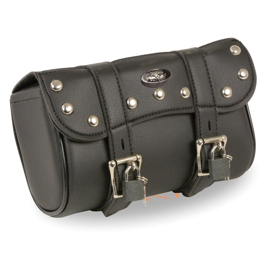 Milwaukee Leather SH616S Black Medium Studded PVC Motorcycle Tool Bag with Key Locks