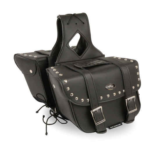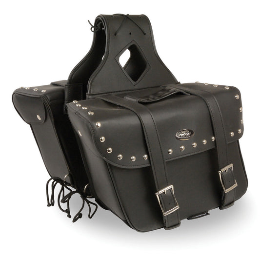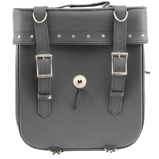 Milwaukee Leather SH57901ZB Black Medium Zip-Off PVC Slanted Throw Over Studded Saddlebags