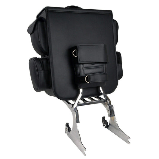 Milwaukee Leather SH584 Large Black PVC Motorcycle Sissy Bar Bag with 5 Bonus Pockets