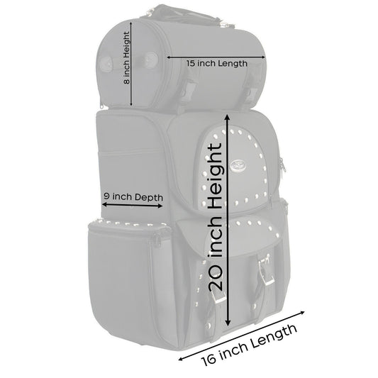 Milwaukee Leather SH605S Large Black 'Studded' Textile and PVC 2 Piece Touring Sissy Bar Motorcycle Bag