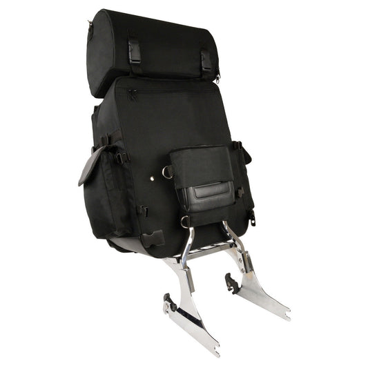 Milwaukee Leather SH605 Large Black Textile and PVC 2 Piece Touring Sissy Bar Motorcycle Bag