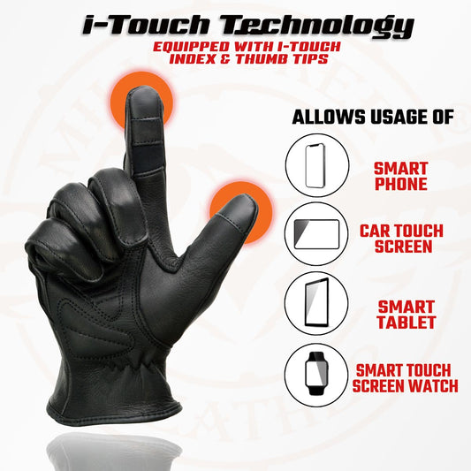 Milwaukee Leather MG7745 Women's Black Deerskin Laced Wrist Motorcycle Gloves w/ Gel Palm and i-Touch Screen