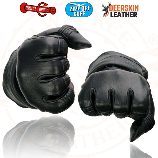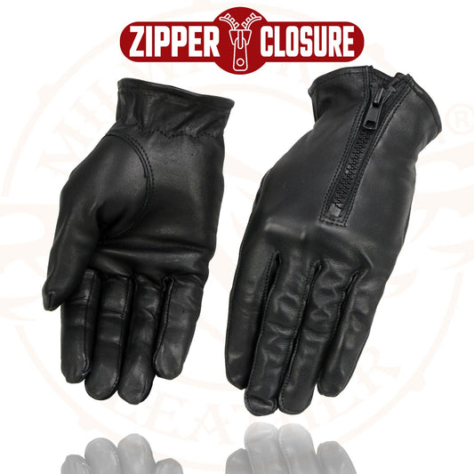 Milwaukee Leather SH722 Women's Black Unlined Leather Lightweight Motorcycle Hand Gloves W/ Wrist Zipper Closure