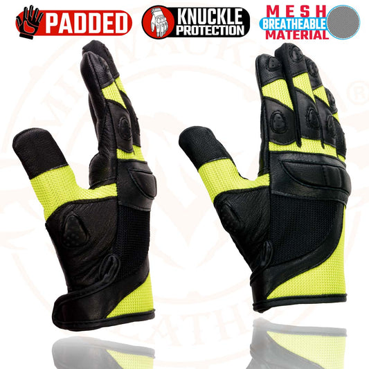Milwaukee Leather MG7740 Women's Padded Black Leather and Neon Green Mesh Racing Motorcycle Rider Gloves
