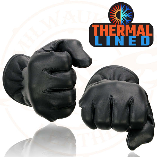 Milwaukee Leather MG7715 Women's Black Leather Thermal Lined Motorcycle Gloves w/ Cinch Wrist Closure
