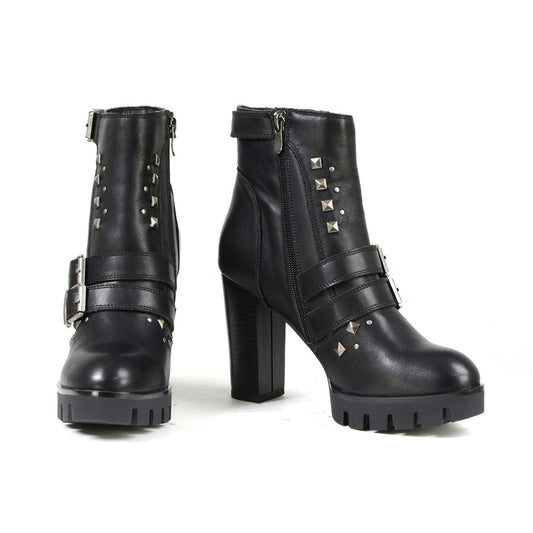 Milwaukee Leather MBL9457 Women's Premium Black Leather Fashion Ankle Booties with Rivets