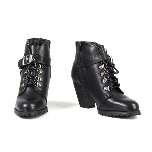 Milwaukee Leather MBL9328 Women's Black Premium Leather Lace-Up Motorcycle Riding Boots w/ Inside Zipper