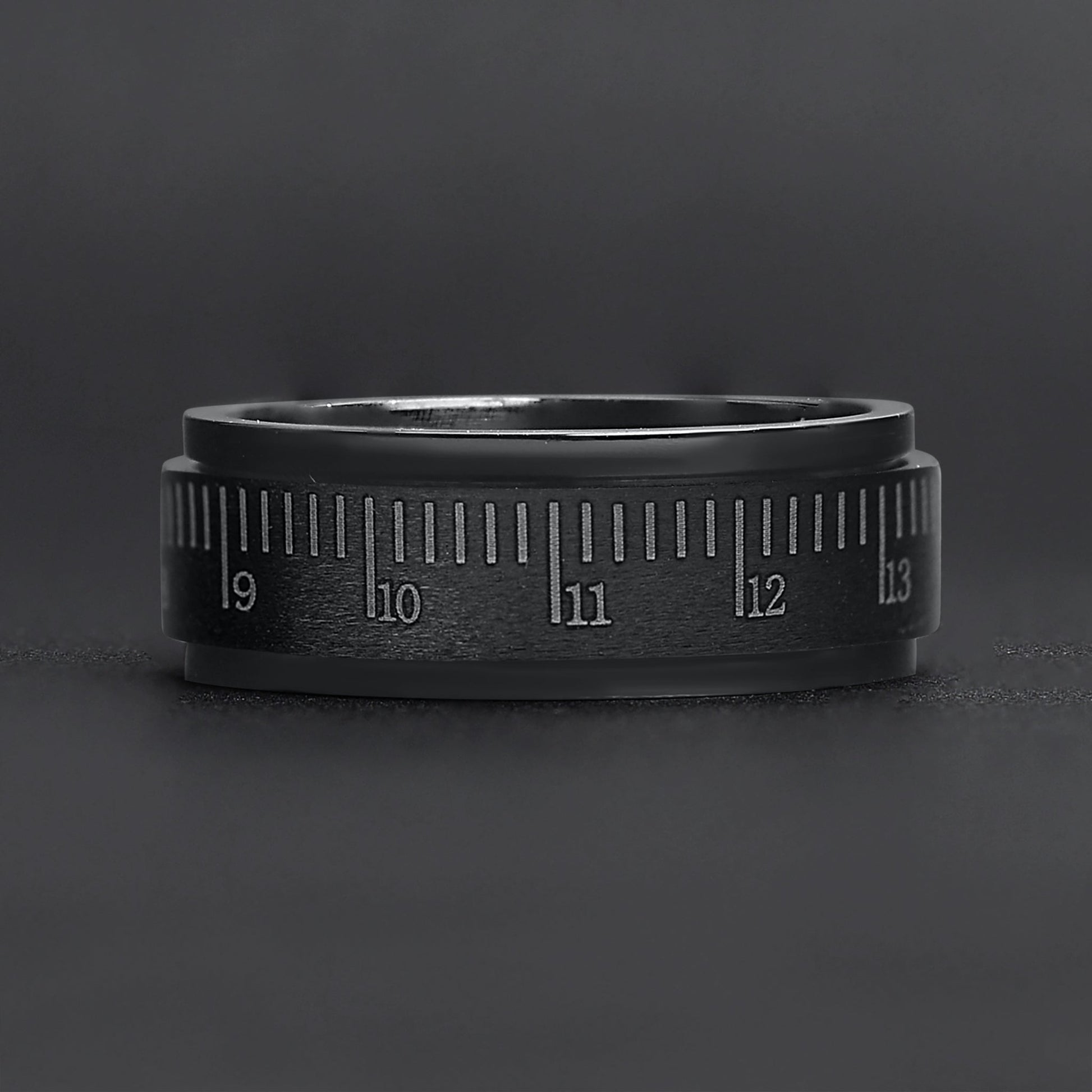 The Black Ruler Spinner Ring is more than just a ring. Crafted with a polished stainless steel inner layer and top layer that spins 360°, this ring provides entertainment while it also helps to relieve stress. The Stainless Steel Black Ruler Spinner Ring is made with surgical stainless steel that offers enhanced durability, even after everyday wear.