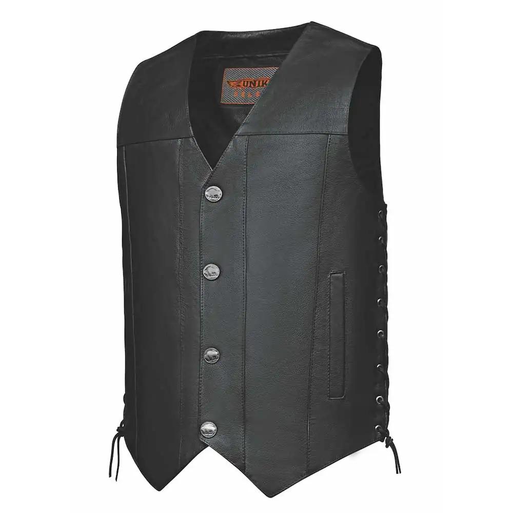 The Mens Premium Leather Vest by Unik Ultra blends rugged durability with a distinctive vintage-inspired style. Crafted from cowhide leather and meticulously designed in Pakistan, this vest features a unique color that adds character and charm. Ideal for motorcycle enthusiasts and those with a penchant for classic fashion, it offers practicality with its array of pockets, including concealed carry options, ensuring both functionality and timeless appeal.