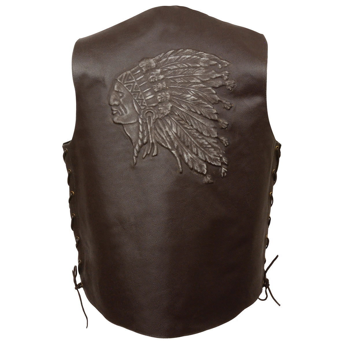 Event Leather ELM3935 Men's 'Indian Head' Embossed Brown Leather Vest with Side Laces