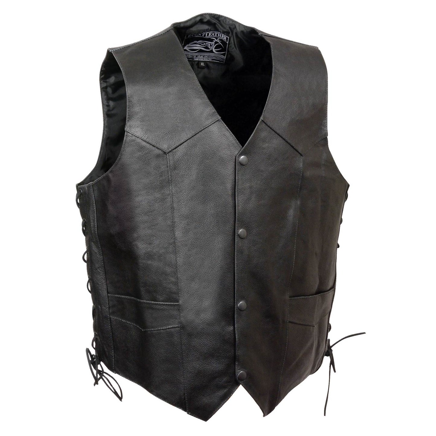 - Side Lace: Event Leather V-Neck Western Vest Motorcycle Gear That Features a Classic Design with A Snap Front Closure. We Have Sizes Ranging from Small To 7X-Large. It’s Important to Wear the Right Protective Clothing That Fits Your Specific Body. Our Apparel Includes a Side Lace for A Customized and Best Fit. Please Use the Following Body Measurement Size Guide to Choose the Size That Is Closest to Your Body