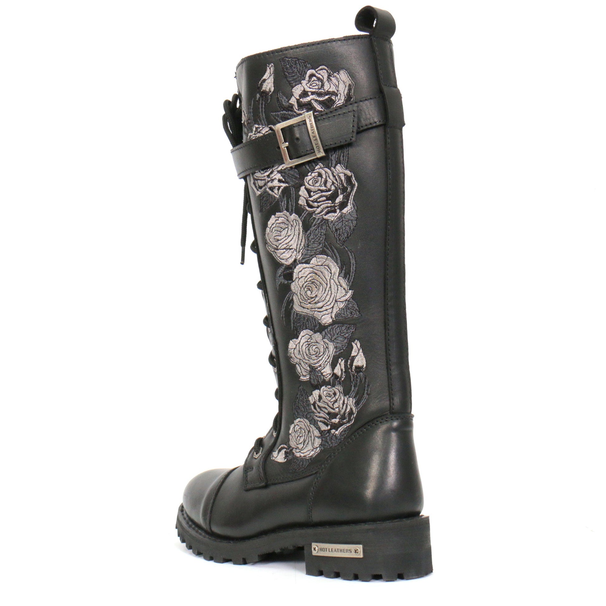 Hot Leathers BTL1007 Ladies Black Knee High Wild Roses Leather Boots