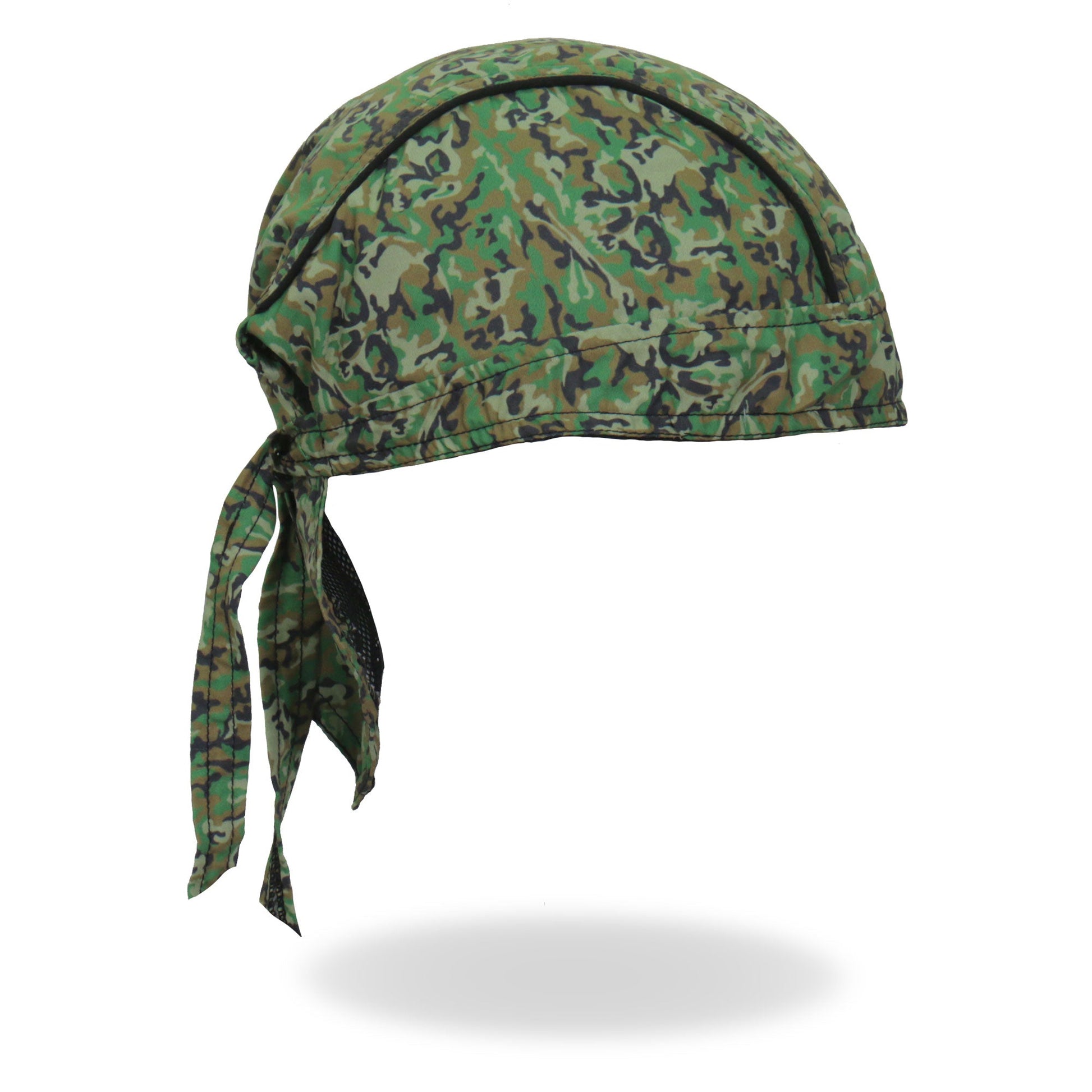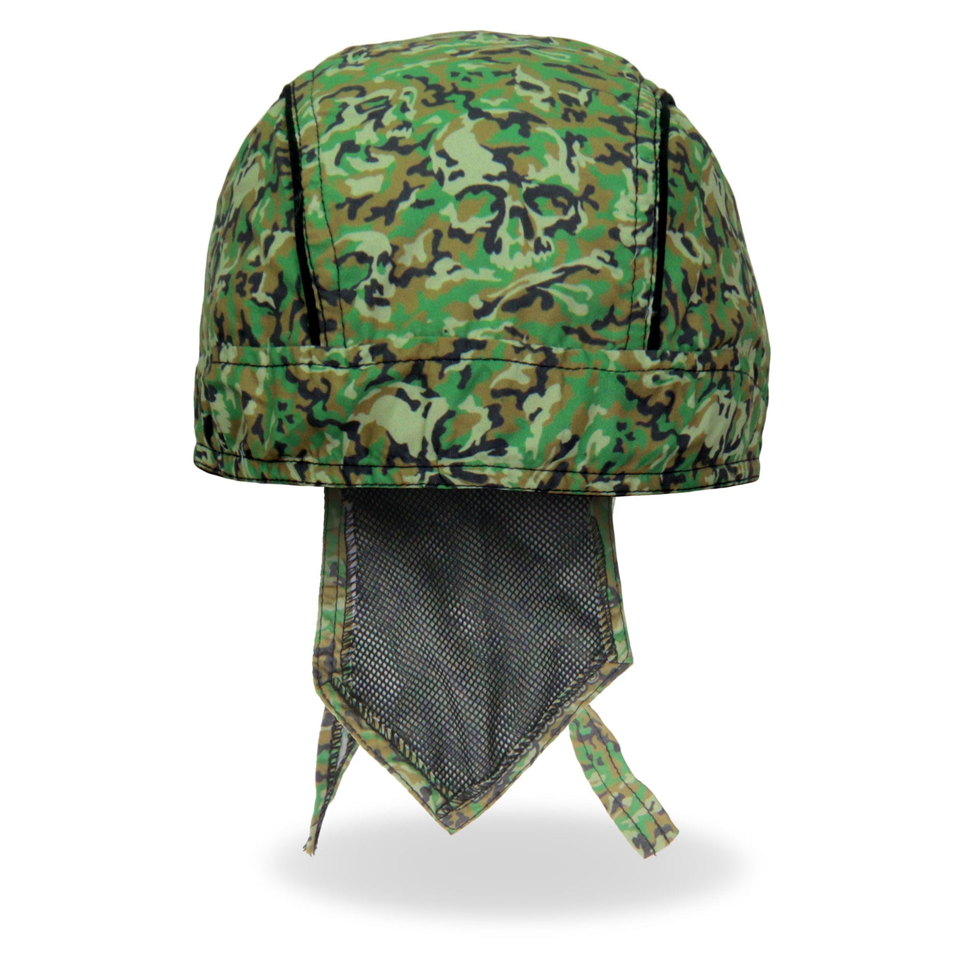 Whether you're hitting the road for a joyride on your motorcycle, getting together with your club, or just need some UV protection and sweat control, Hot Leathers premium doo rag head wraps are just what you need! Put on your new headwrap bandana while you run errands or handle some yard work. Represent your unique style with our moisture wicking, mesh lined head wraps, showcasing bright, long lasting designs sure to turn heads! This head wrap features our original skull military camo design.