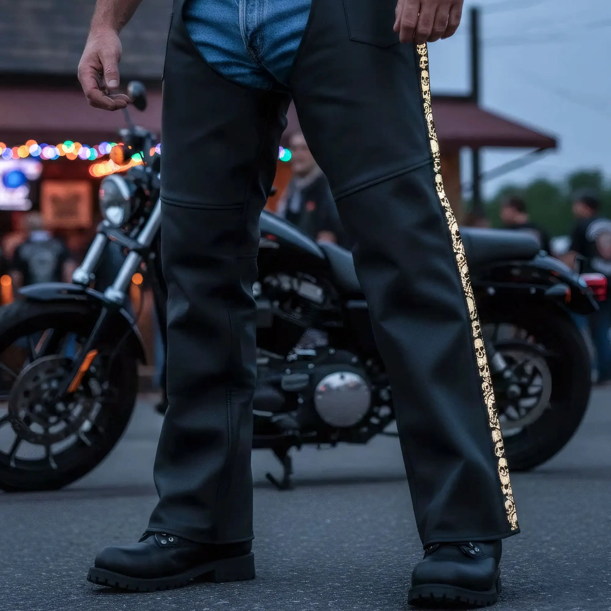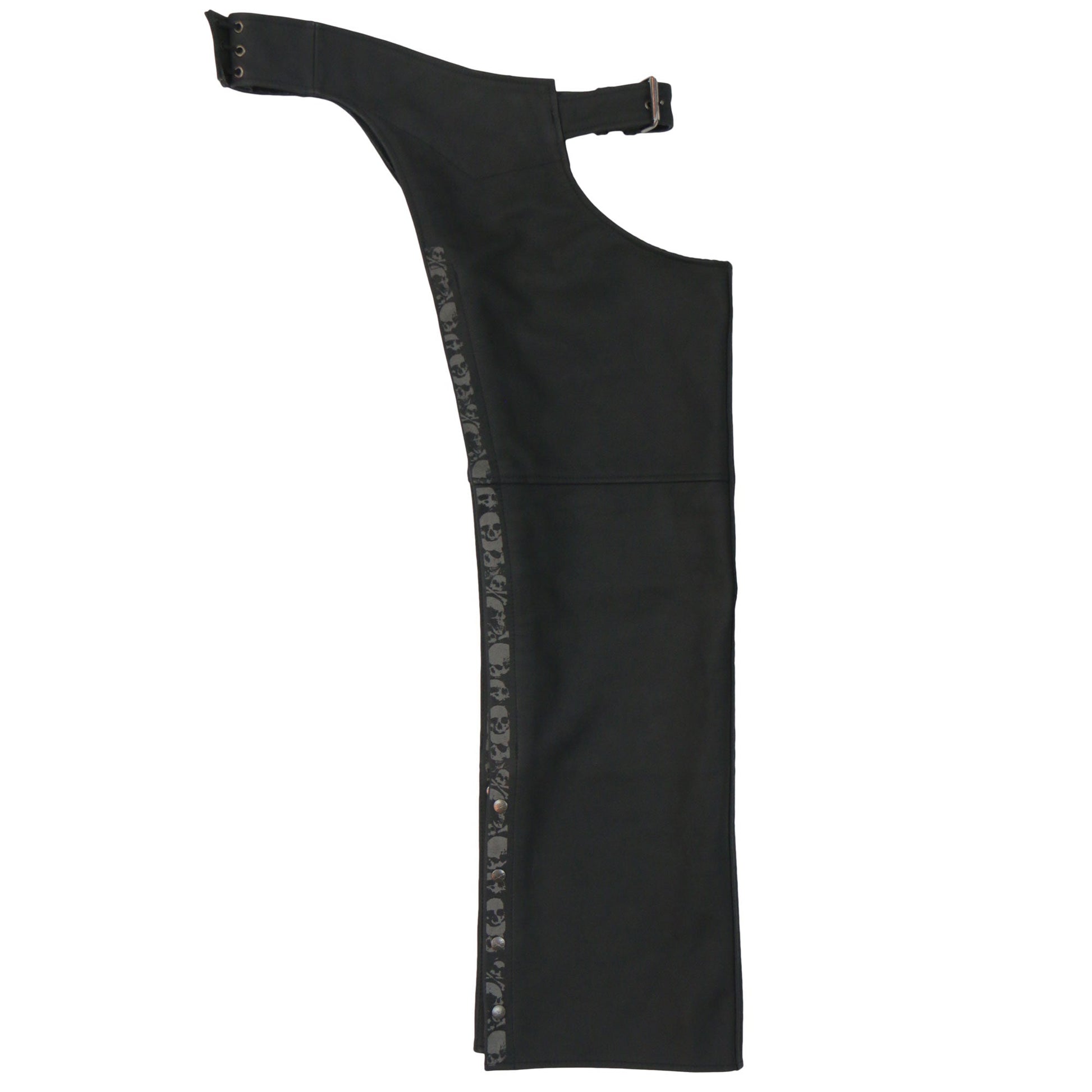 Hot Leathers CHM2001 Men's Matte Black motorcycle Leather Biker Chaps with Ancient Skull Reflective Artwork