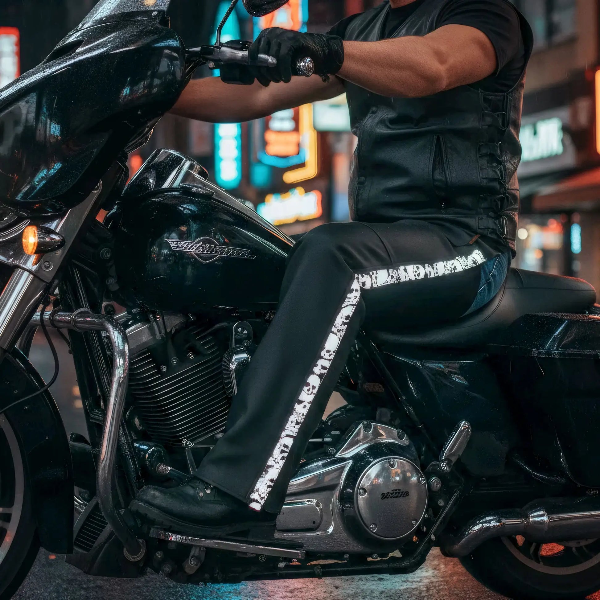 • Reflective Skull Design Imprinted On Side Of Leg