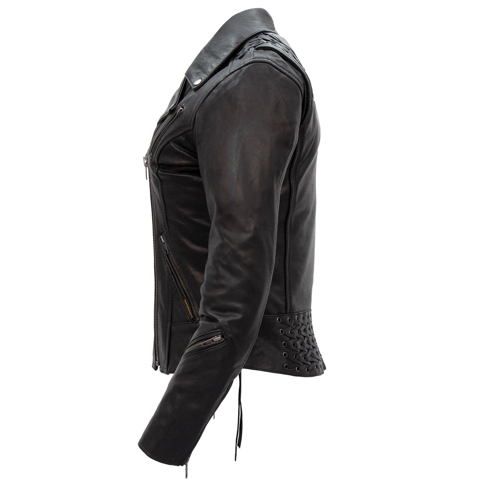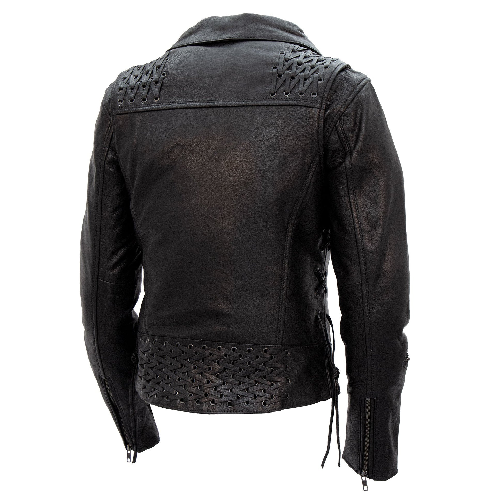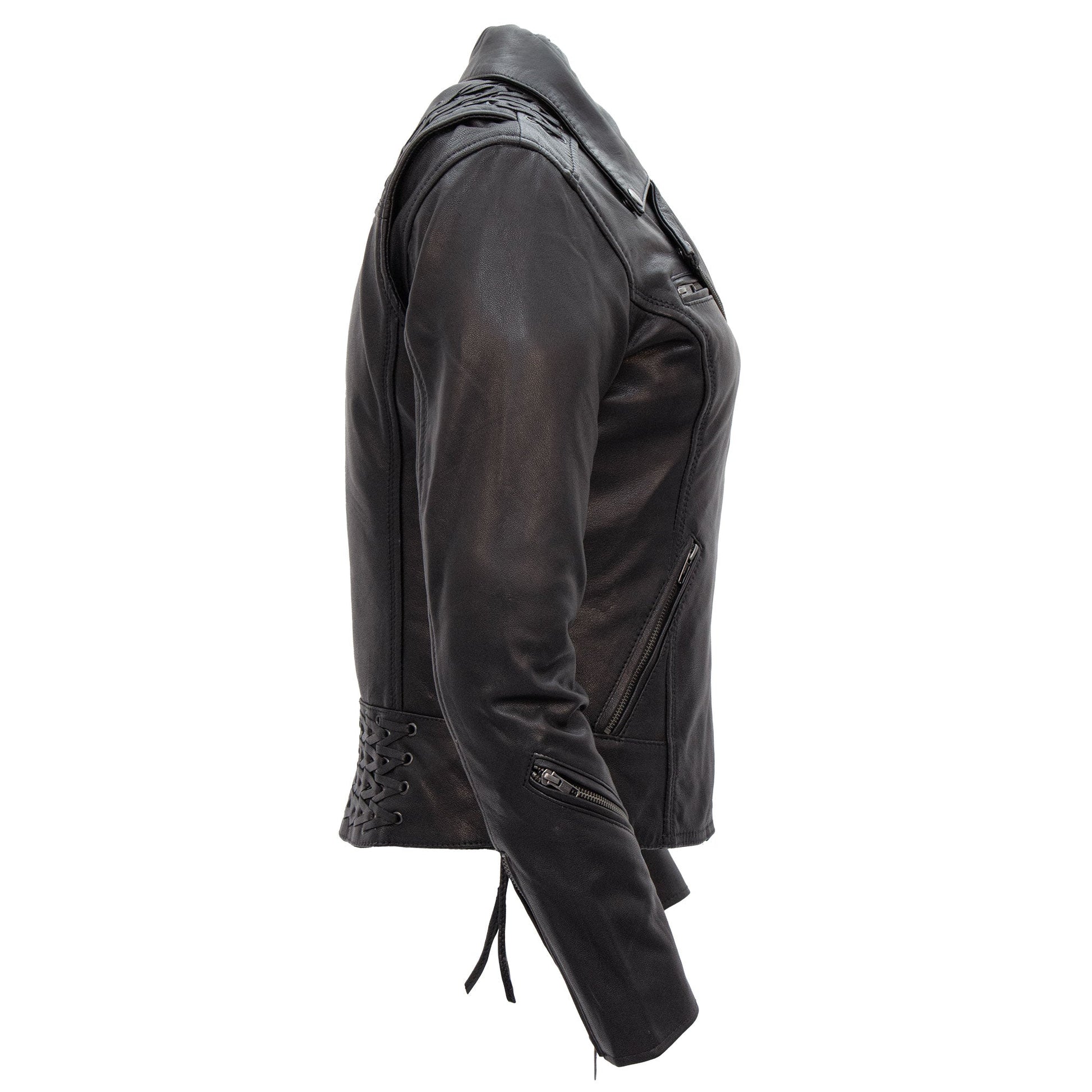 Hot Leathers JKL1027 Ladies Black Lace Detail Carry Conceal Leather Motorcycle Biker Jacket