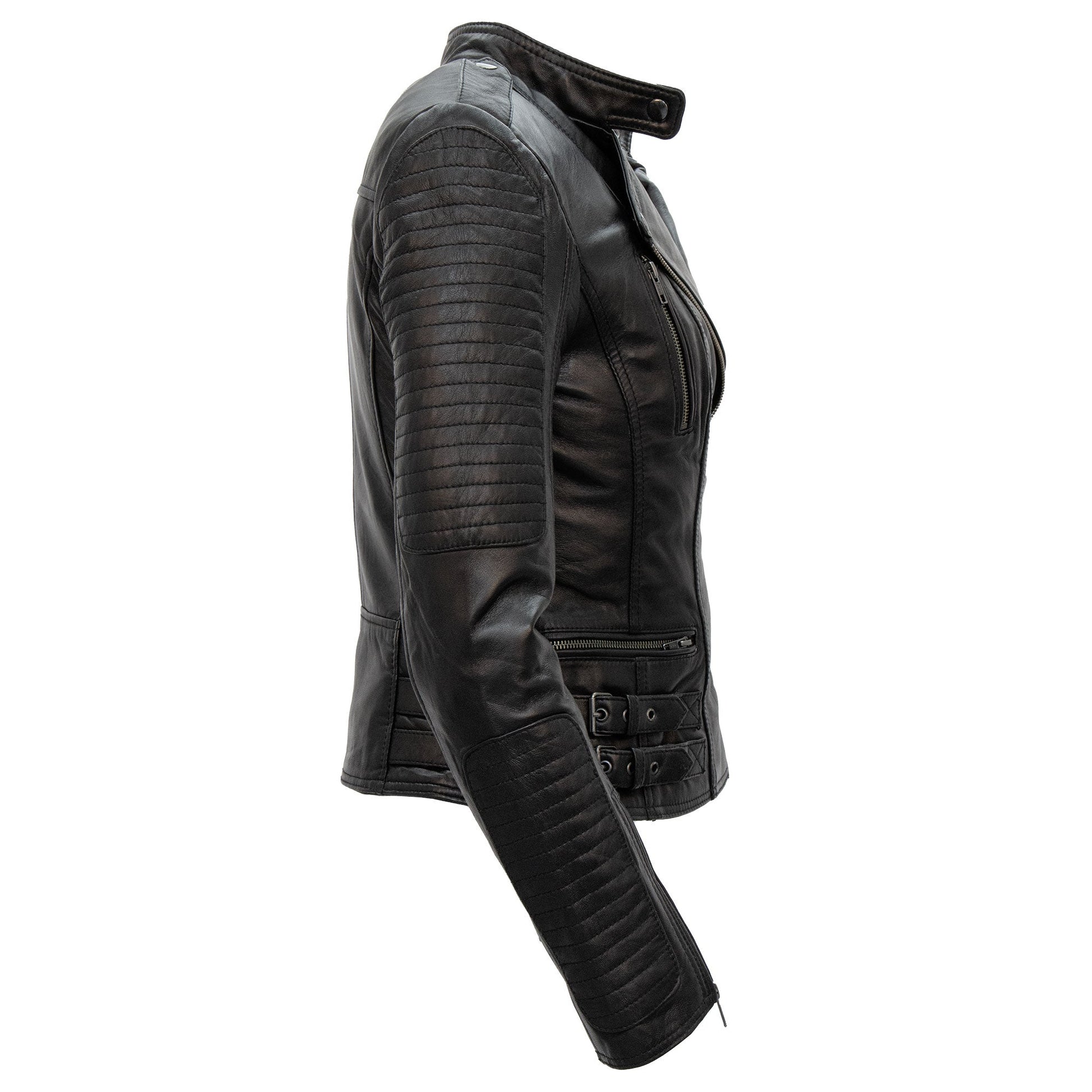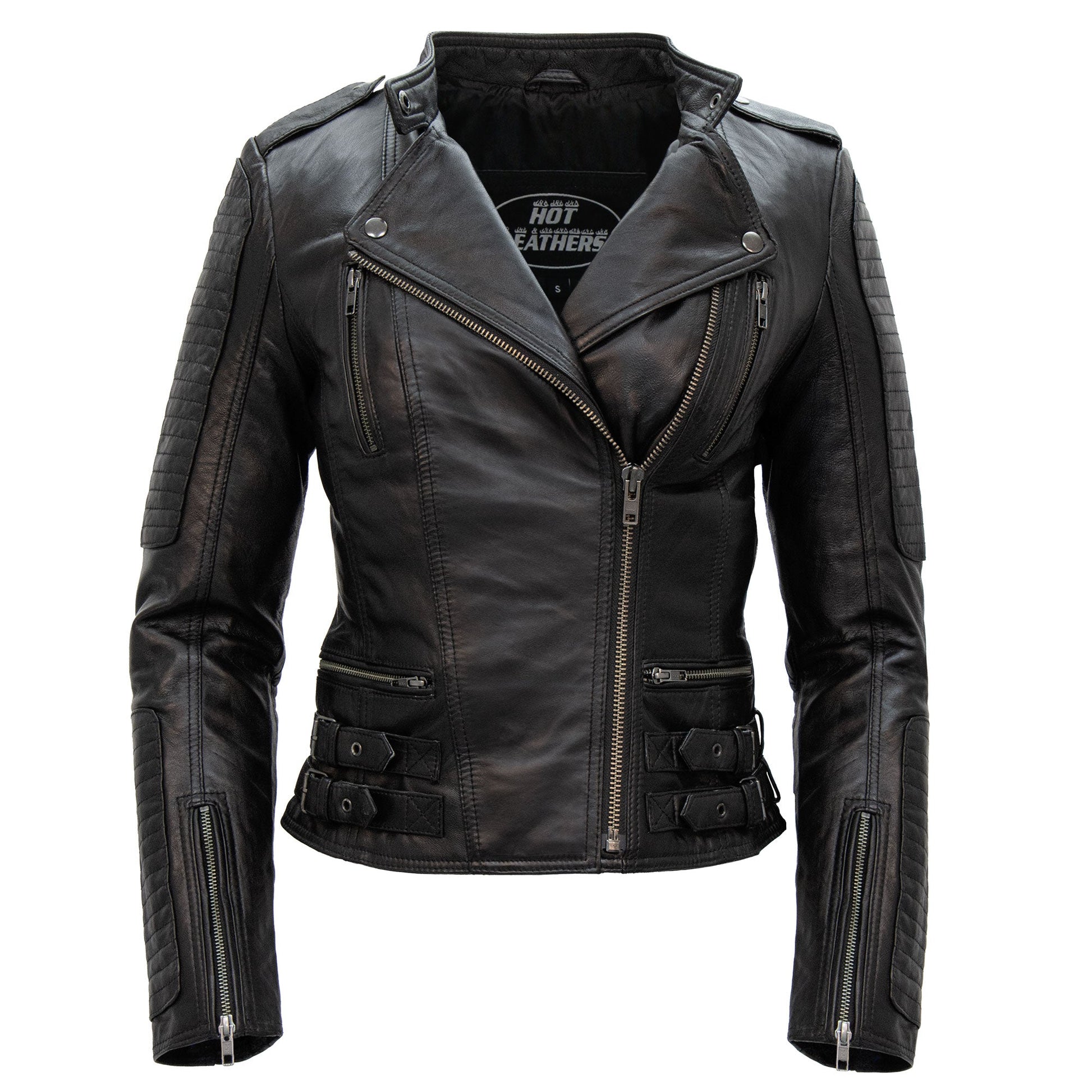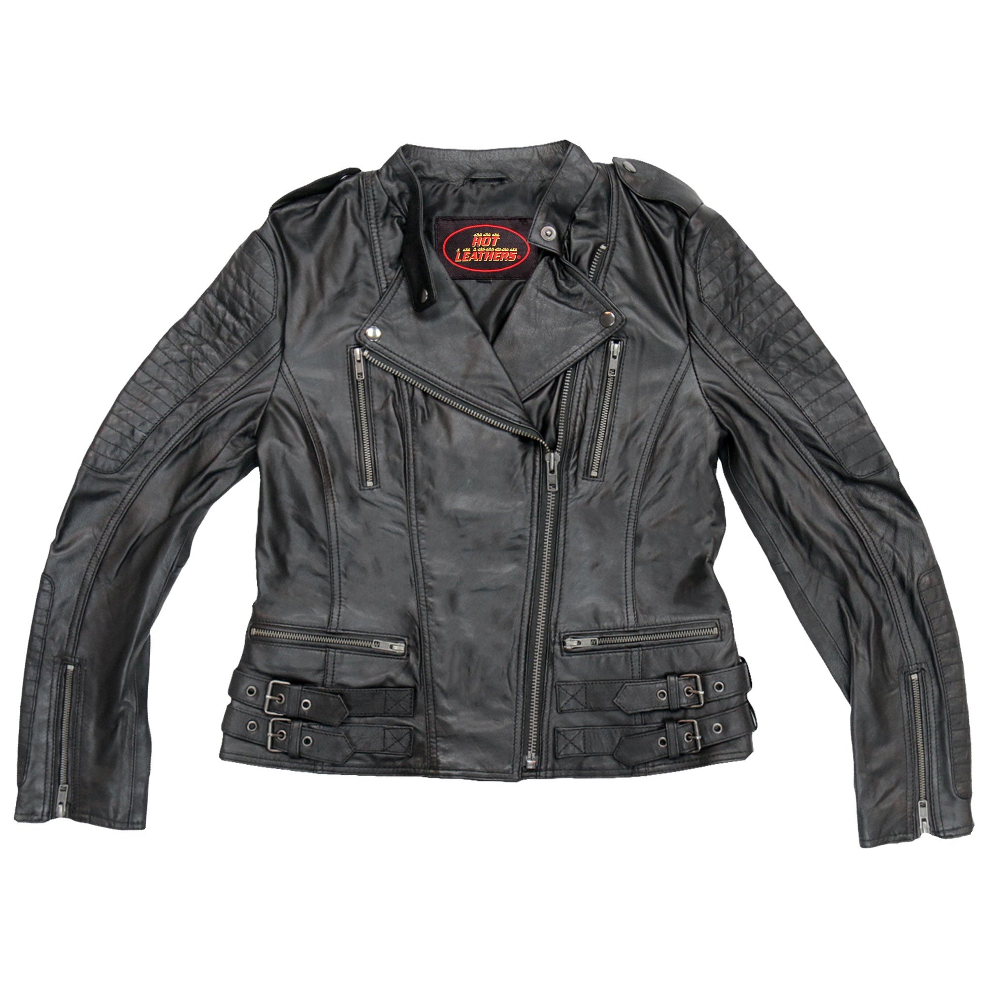 Hot Leathers JKL1030 Ladies Lightweight Motorcycle Black Leather Biker Jacket with Side Buckles