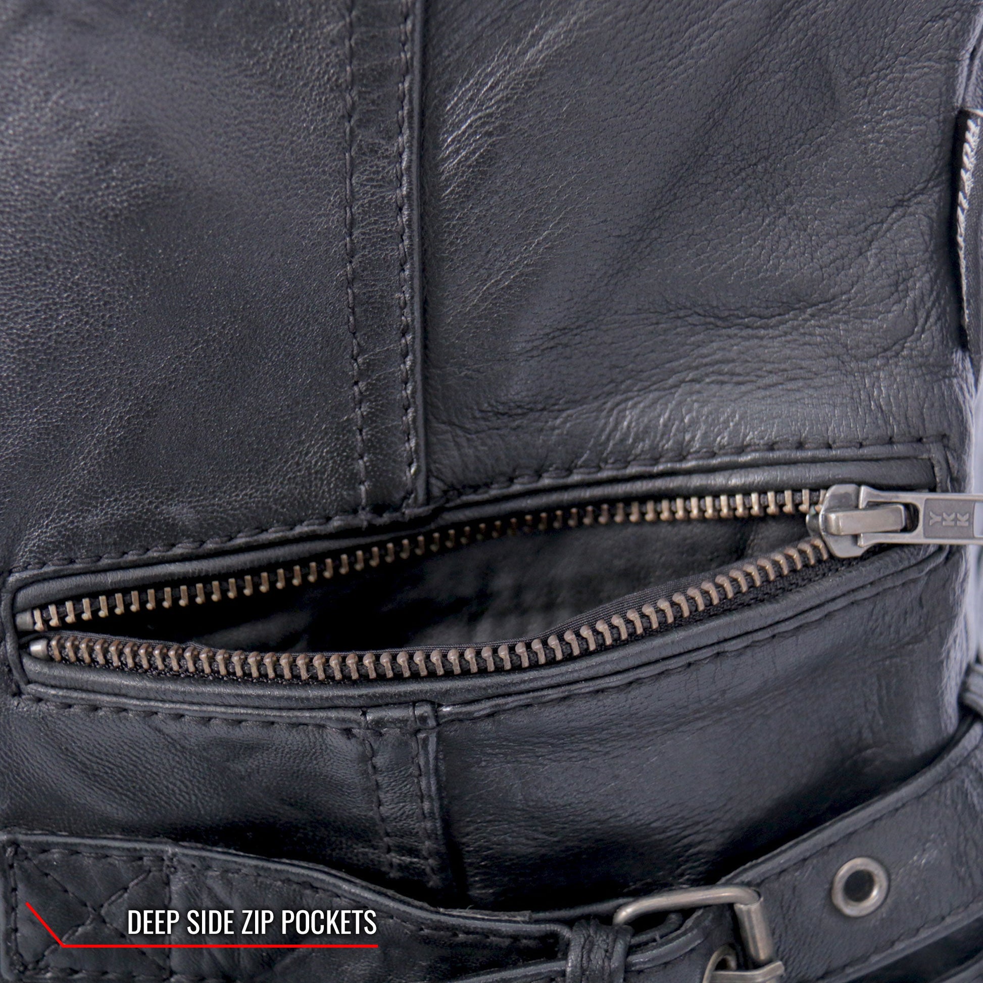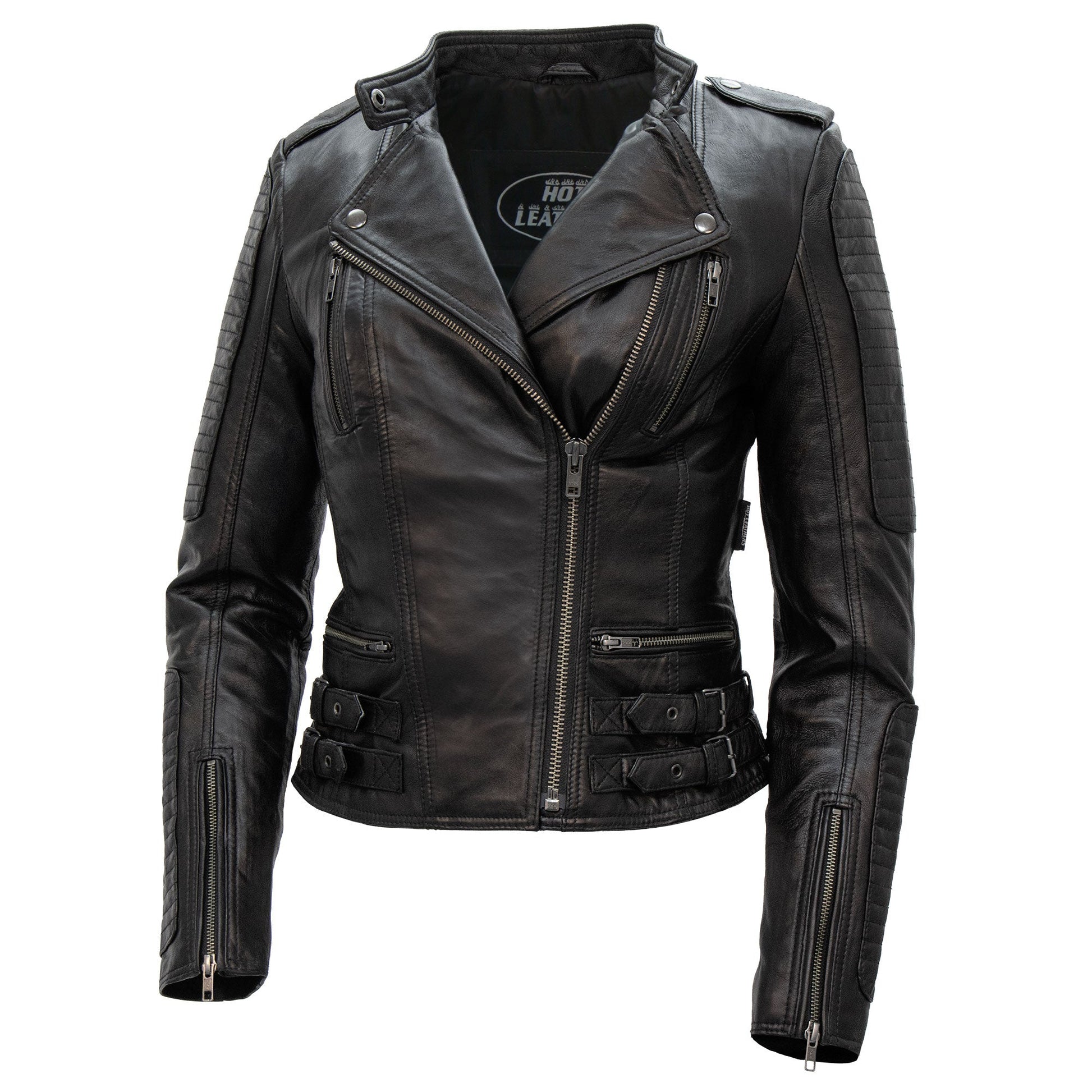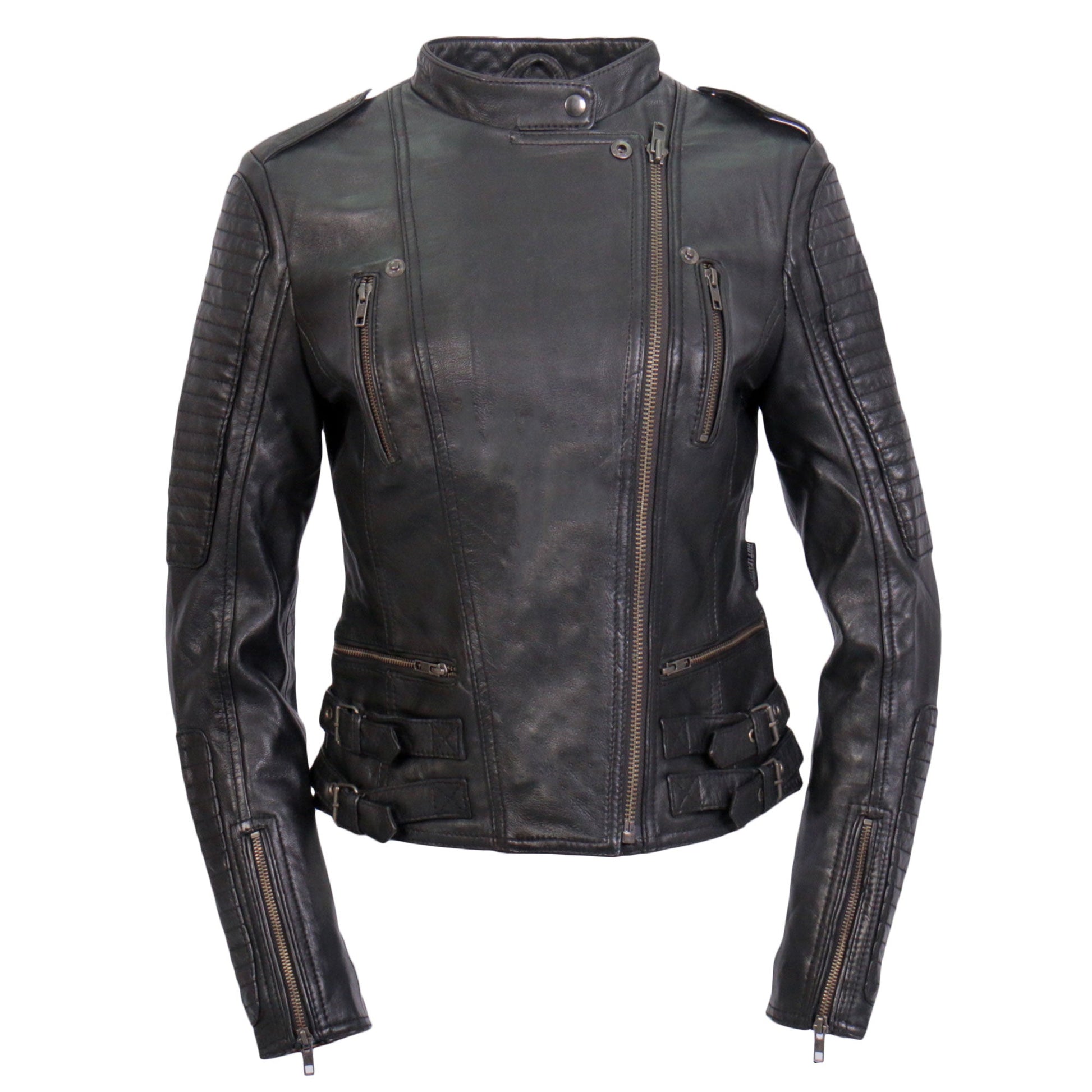 Hot Leathers JKL1030 Ladies Lightweight Motorcycle Black Leather Biker Jacket with Side Buckles